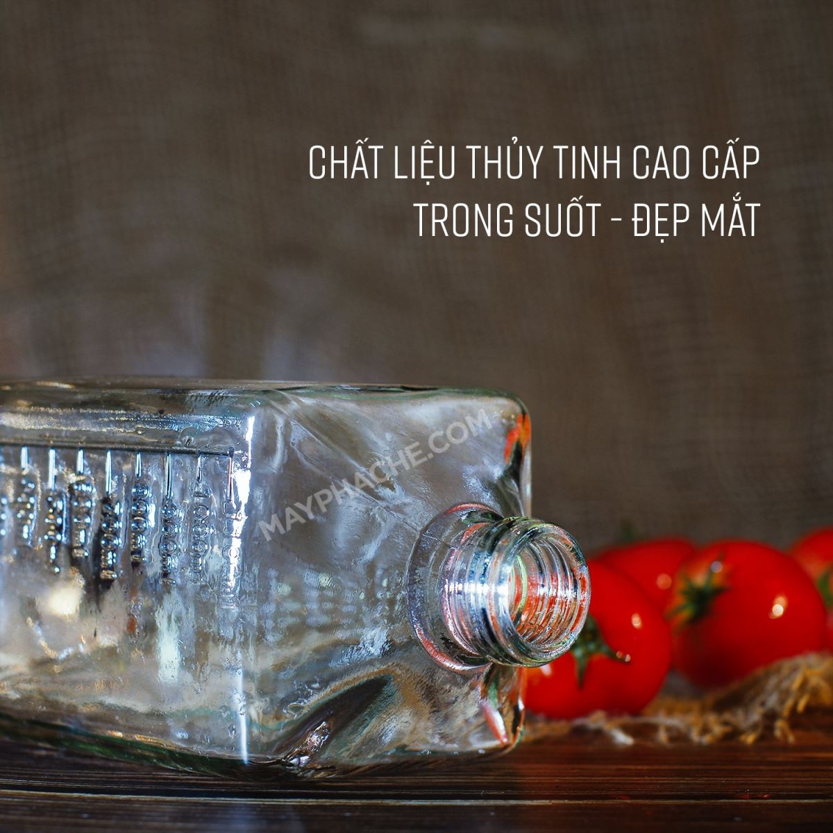 Thứ ba, thân bình cao 20.5cm, chiều rộng của đáy là 9.5cm rất vừa vặn khi cầm tay. Chất liệu thủy tinh dày dặn, bền bỉ, cầm chắc tay và dễ dàng lau chùi, vệ sinh. Thủy tinh không mùi, không vị, không bị han gỉ nên bảo đảm an toàn sức khỏe; giữ trọn vẹn hương vị của sữa, đường, siro.