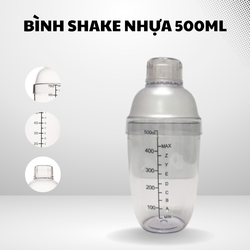 Shaker nhựa là dụng cụ được thiết kế, sản xuất để chuyên dùng cho việc pha chế thủ công. Các nguyên liệu được đưa vào trong bình shaker; bartender hoặc người pha chế dùng tay lắc thật mạnh và nhanh để nguyên liệu trộn đều thành đồ uống. Quán cà phê, quầy bar, trong các nhà hàng, khách sạn đều sử dụng bình shaker.