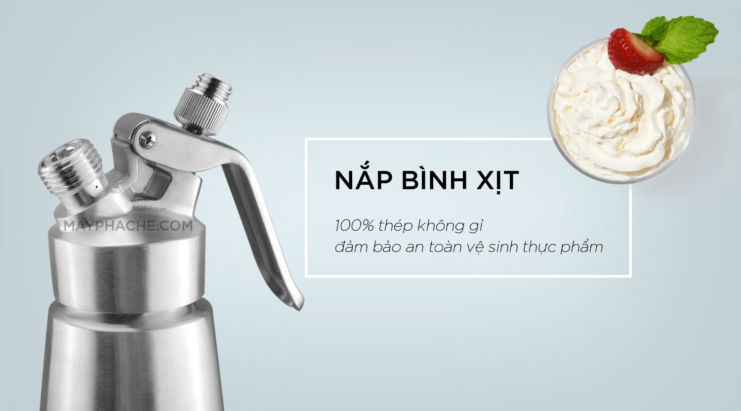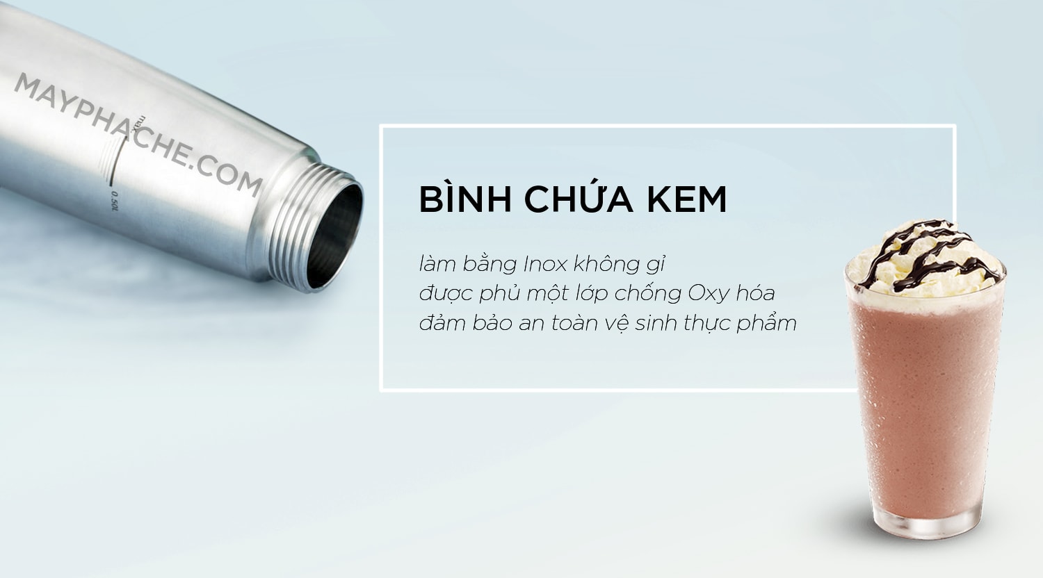 Với chiếc bình xịt này, bạn có thể lưu giữ kem được 3 đến 4 ngày mà không sợ bị ảnh hưởng đến chất lượng. Các nhà hàng, quán ăn, quán cà phê hay tiệm bánh cần sử dụng số lượng lớn kem tươi không nên bỏ qua thiết bị này.