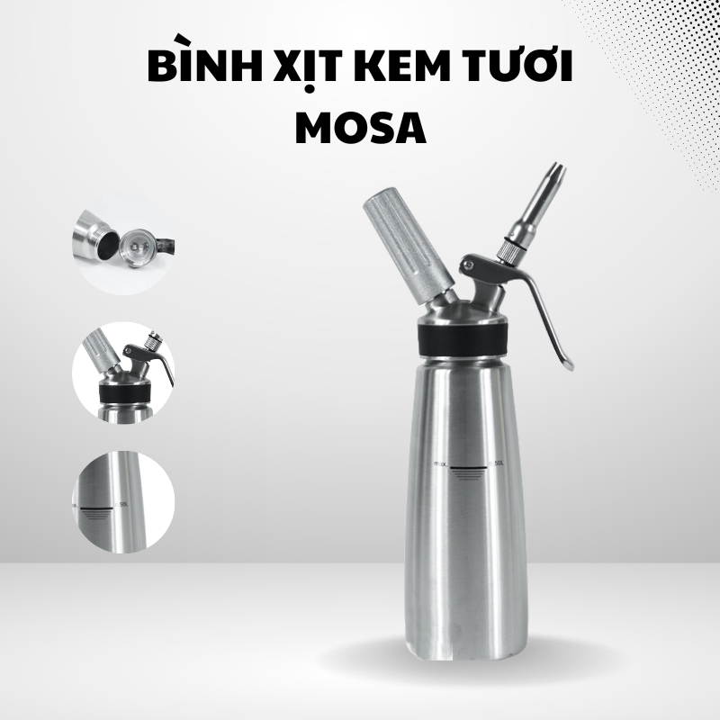 Bình xịt kem tươi inox Mosa 500ml bình xịt cao cấp dùng trong pha chế