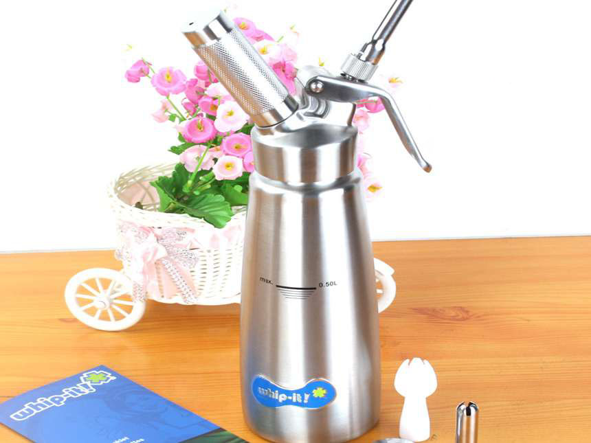 Bình chứa kem được làm bằng Inox không gỉ, được phủ một lớp chống ôxy hóa màu trắng đạt tiêu chuẩn thực phẩm châu Âu.