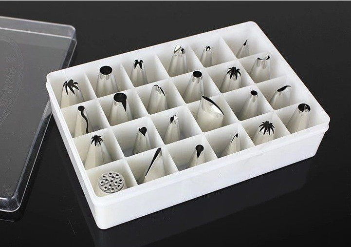 Bộ đui bắt kem 24 món là sản phẩm đặc biệt có thể đáp ứng hoàn toàn nhu cầu trang trí bánh kem của thợ bánh nói riêng và người mê làm bánh nói chung. Bộ đui có chất liệu từ thép không rỉ đảm bảo cho quá trình sử dụng, làm sạch và bảo quản lâu dài.