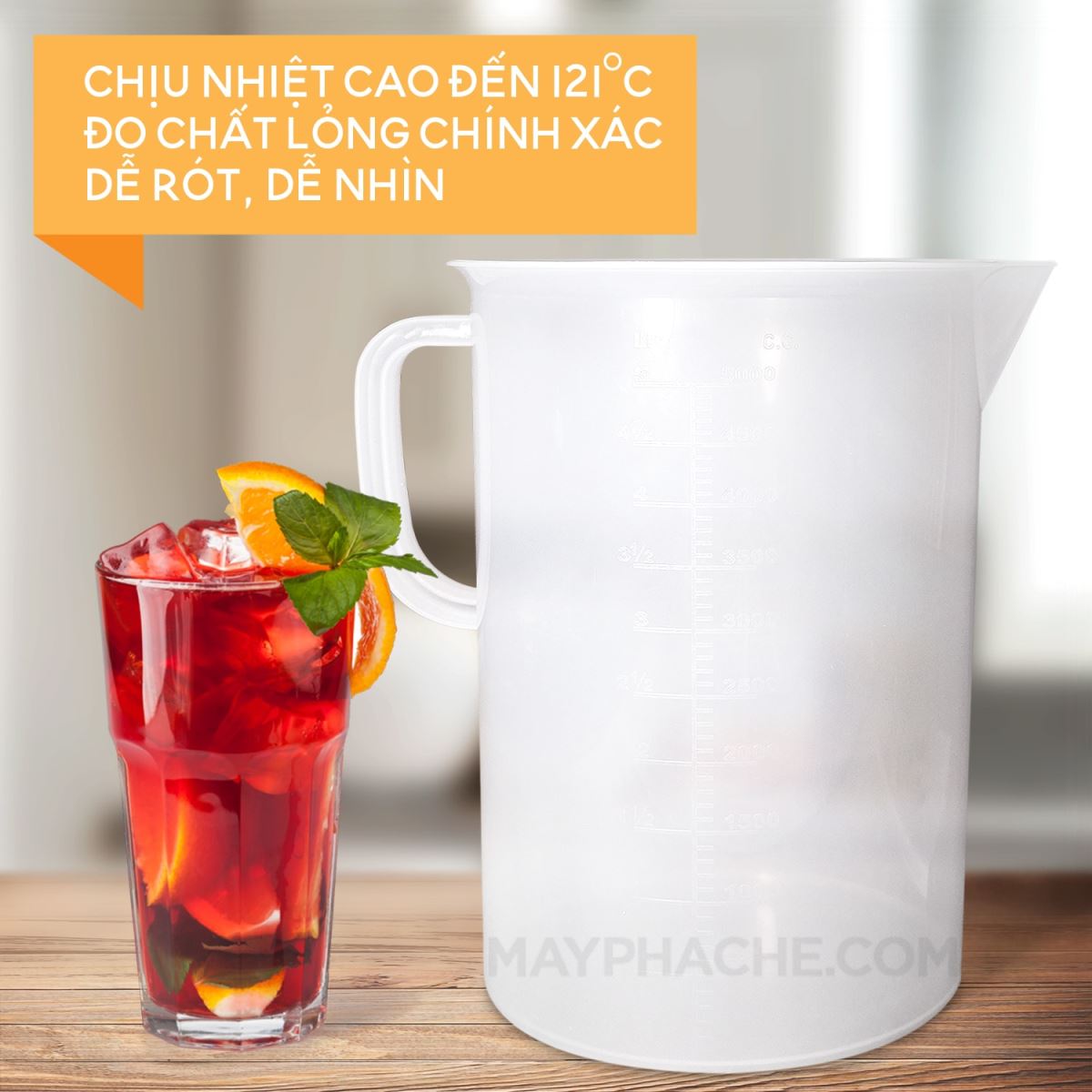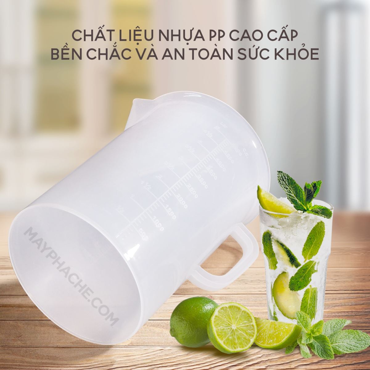 Mayphache.vn chỉ cung cấp loại ca đong bằng nhựa Polypropylen cao cấp. Sản phẩm có khả năng chịu nhiết cao lên đến 121°C. Chất nhựa này siêu bền nên bạn không lo việc va đập hay làm rơi sẽ khiến ca nhựa bị vỡ. Thông số trên thân ca đong định lượng được in chính xác, rõ ràng, tạo độ chính xác tuyệt đối khi pha chế.
