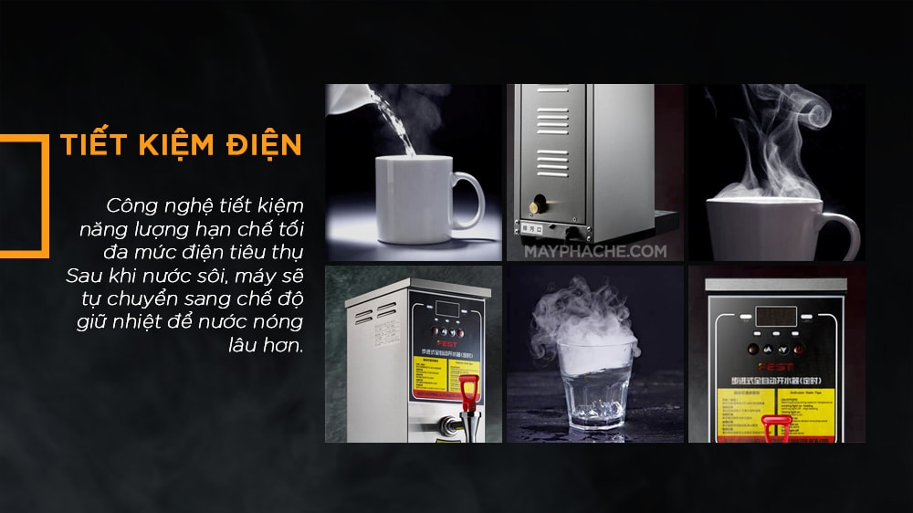 Thiết bị này có công suất lên đến 30l/h nên có thể đáp ứng được nhu cầu sử dụng nước nóng của một quán lớn; với lượng khách hàng đông đúc. Công nghệ đun nước siêu tốc hàng đầu hiện nay tăng tốc độ đun nước lên mức tối đa. Theo đó, sẽ có 10l nước được đun sôi; đảm bảo cho việc pha chế chỉ trong vòng vài phút.