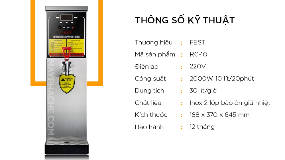 Là một đơn vị tiên phong trong lĩnh vực cung cấp các loại máy móc; thiết bị và dụng cụ pha chế, Mayphache.com sẽ mang đến cho bạn một cây đun nước tự động FEST RC-10 chất lượng tốt với giá hợp lý. Hãy liên hệ với chúng tôi ngay hôm nay để được mua đúng giá, đúng chất lượng và được bảo hành!