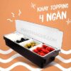Khay topping inox vuông 1/6 đựng trân châu, thạch có nắp đậy
