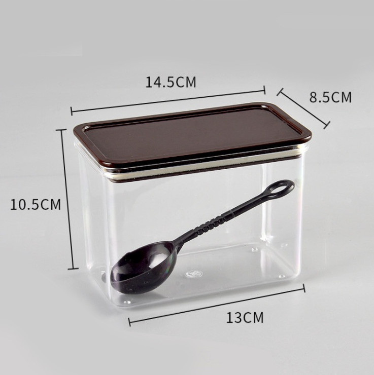 Sản phẩm trong suốt có thể để trưng bày cafe trên quầy, hoặc trong tủ bếp dễ nhận biết nguyên liệu bên trong hộp.