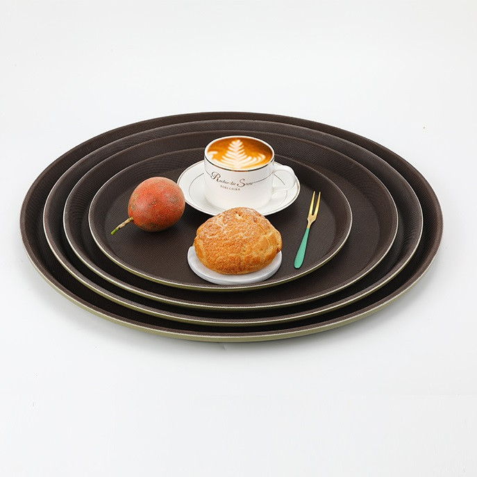 Sử dụng khay phục vụ tròn bằng nhựa tiện lợi và bền bỉ