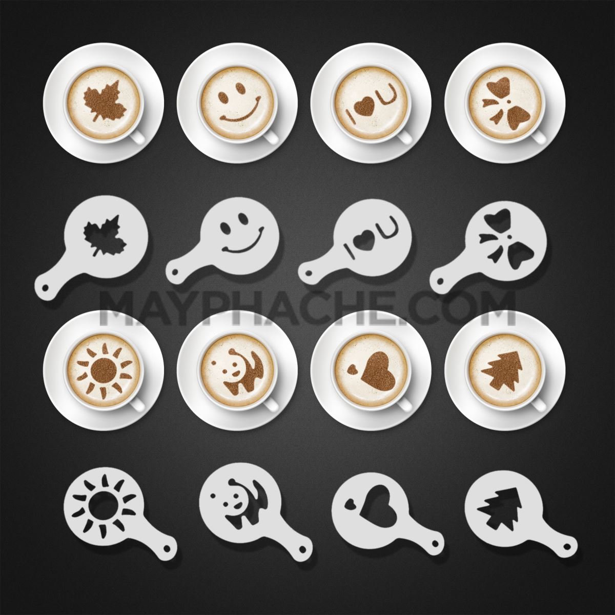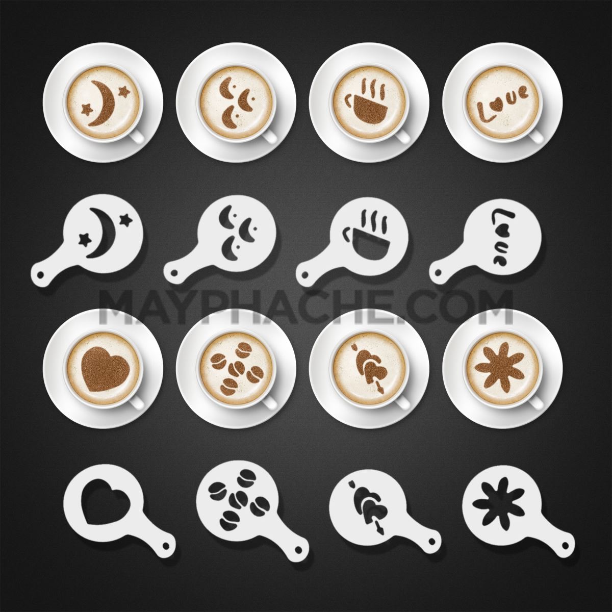 Các khuôn nhựa đã được thiết kế sẵn hình ảnh; bạn chỉ việc đưa bột mịn và bọt sữa lên đồ uống qua các khuôn nhựa này. Với khuôn nhựa tạo hình, bất cứ ai cũng có thể tạo hình trang trí cho đồ uống. Bạn cũng chẳng cần đau đầu sáng tạo ra các kiểu trang trí mới; bởi bộ khuôn nhựa tạo hình có đến 16 mẫu khác nhau.
