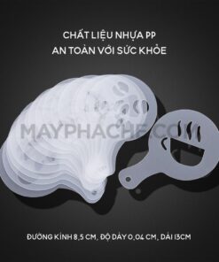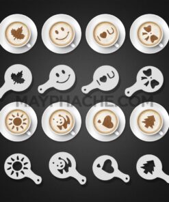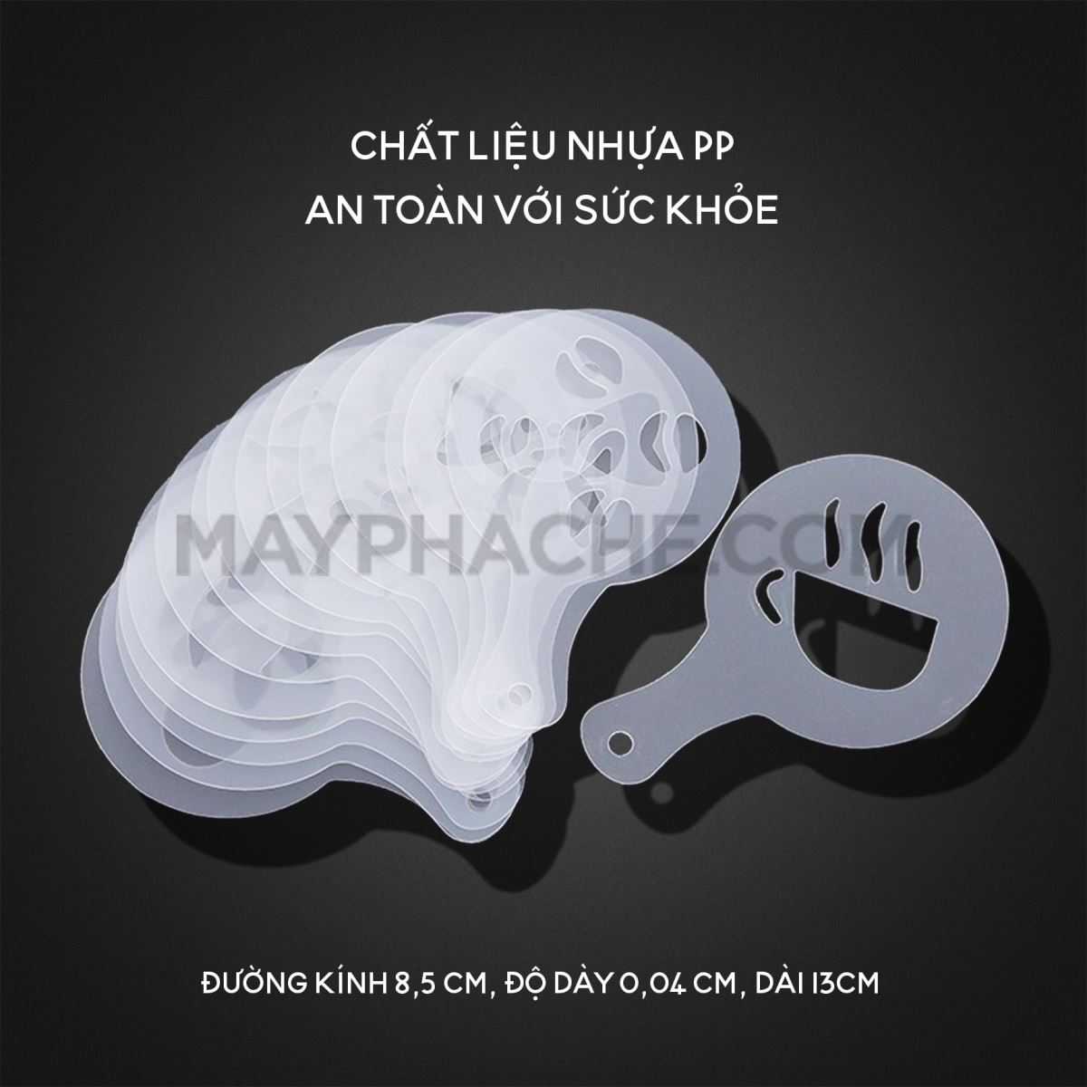Những chiếc khuôn nhựa tạo hình cappuccino nhỏ xinh; mẫu mã đa dạng giúp việc tạo hình trang trí đồ uống trở nên đơn giản hơn bao giờ hết. Chẳng cần là nghệ sĩ trong trang trí đồ uống; bạn vẫn có thể tạo nên những tuyệt tác làm ưng con mắt của thực khách. Bộ khuôn nhựa tạo hình gồm 16 chiếc là dụng cụ rất nên có cho các barista.