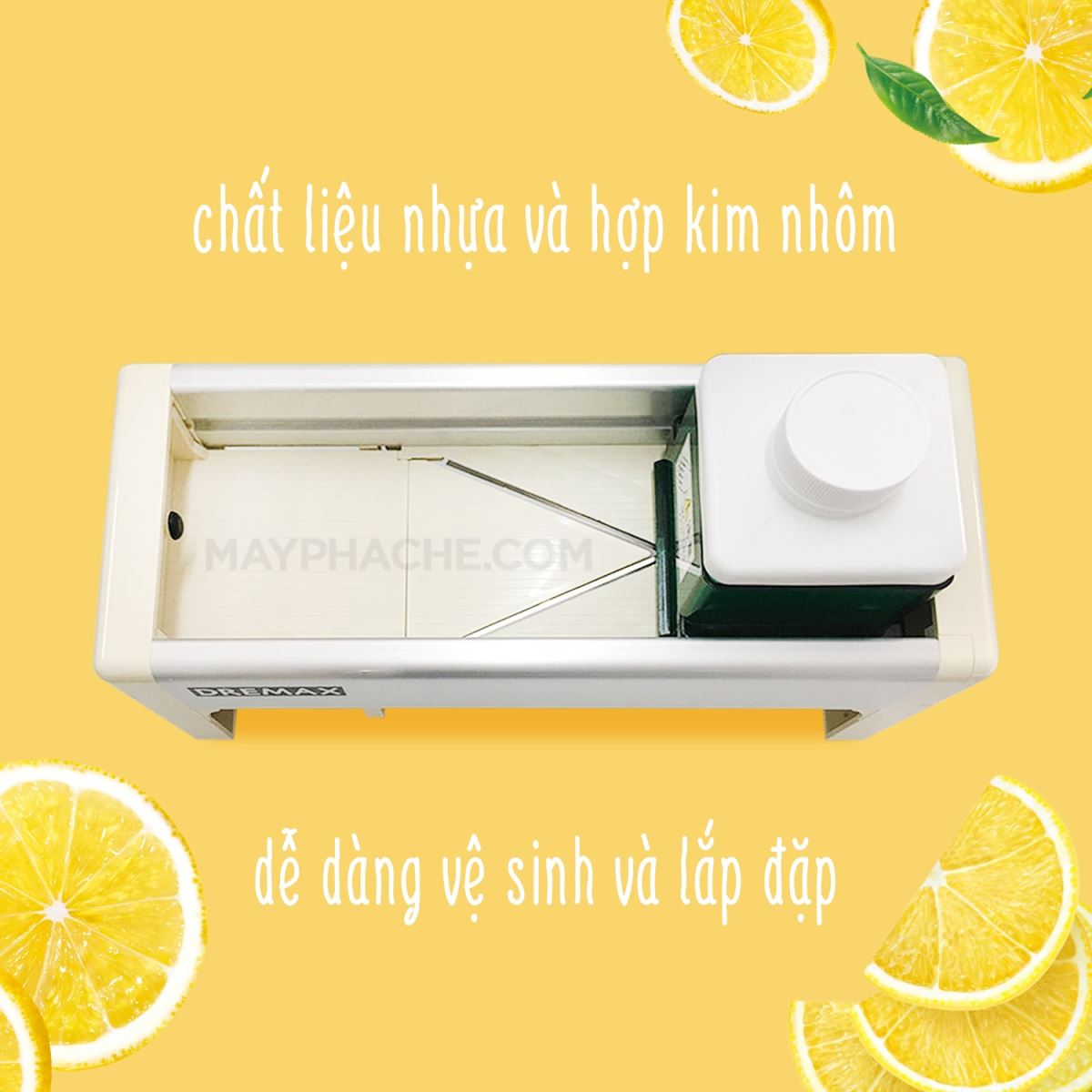 Là một đơn vị tiên phong trên thị trường trong lĩnh vực cung cấp dụng cụ; thiết bị pha chế, mayphache.vn mang đến cho bạn những sản phẩm máy cắt lát hoa quả Dremax 005 tốt nhất với giá hợp lý nhất. Chúng tôi mang đến khách hàng những máy cắt lát hoa quả làm bằng chất liệu nhựa và hợp kim nhôm. Đây là 2 chất liệu an toàn tuyệt đối khi tiếp xúc với thực phẩm.