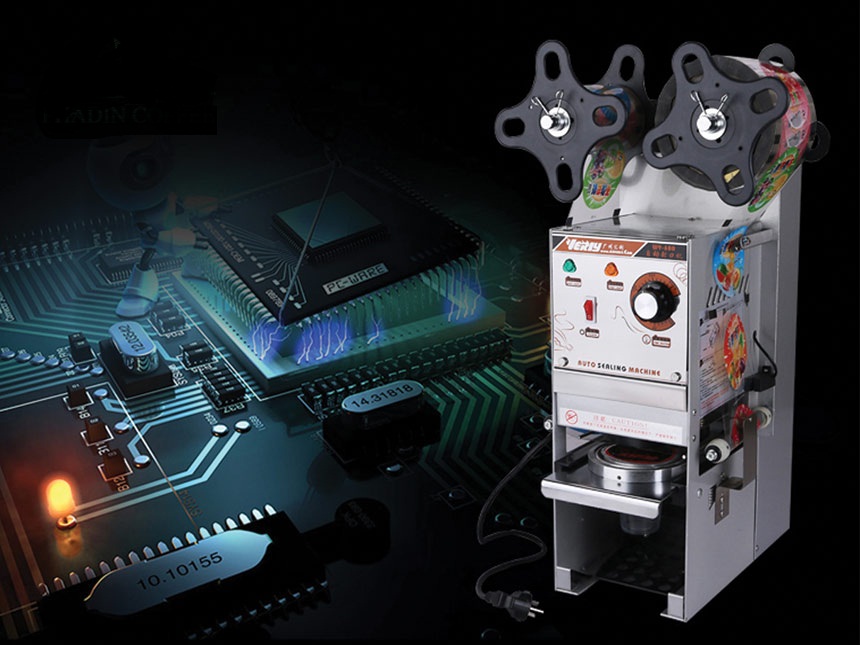 Máy được cải tiến với cơ chế vận hành bán tự động. Ngay sau khi cốc được bạn đẩy vào đúng vị trí dập khuôn, máy sẽ tự động cuộn màng và căn chỉnh lớp nilon phủ kín miệng cốc, sau đó tự động dập khuôn xuống, gắn chặt giấy nilon vào cốc đồ uống thơm ngon. Cuối cùng, bạn chỉ cần thêm thao tác kéo khuôn ra để lấy cốc là đã hoàn thành 100% công đoạn dập nắp.