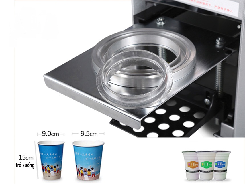 Trang bị 2 khuôn dập khác nhau, phục vụ mọi kích cỡ ly cốc