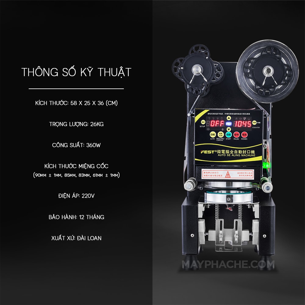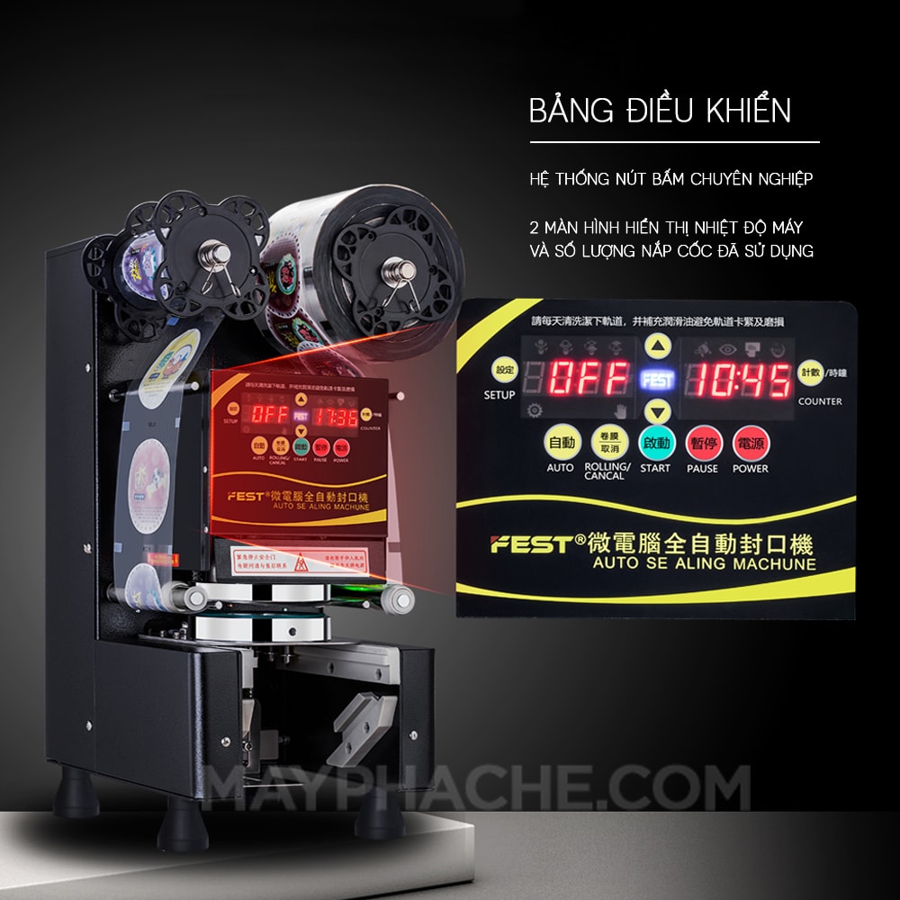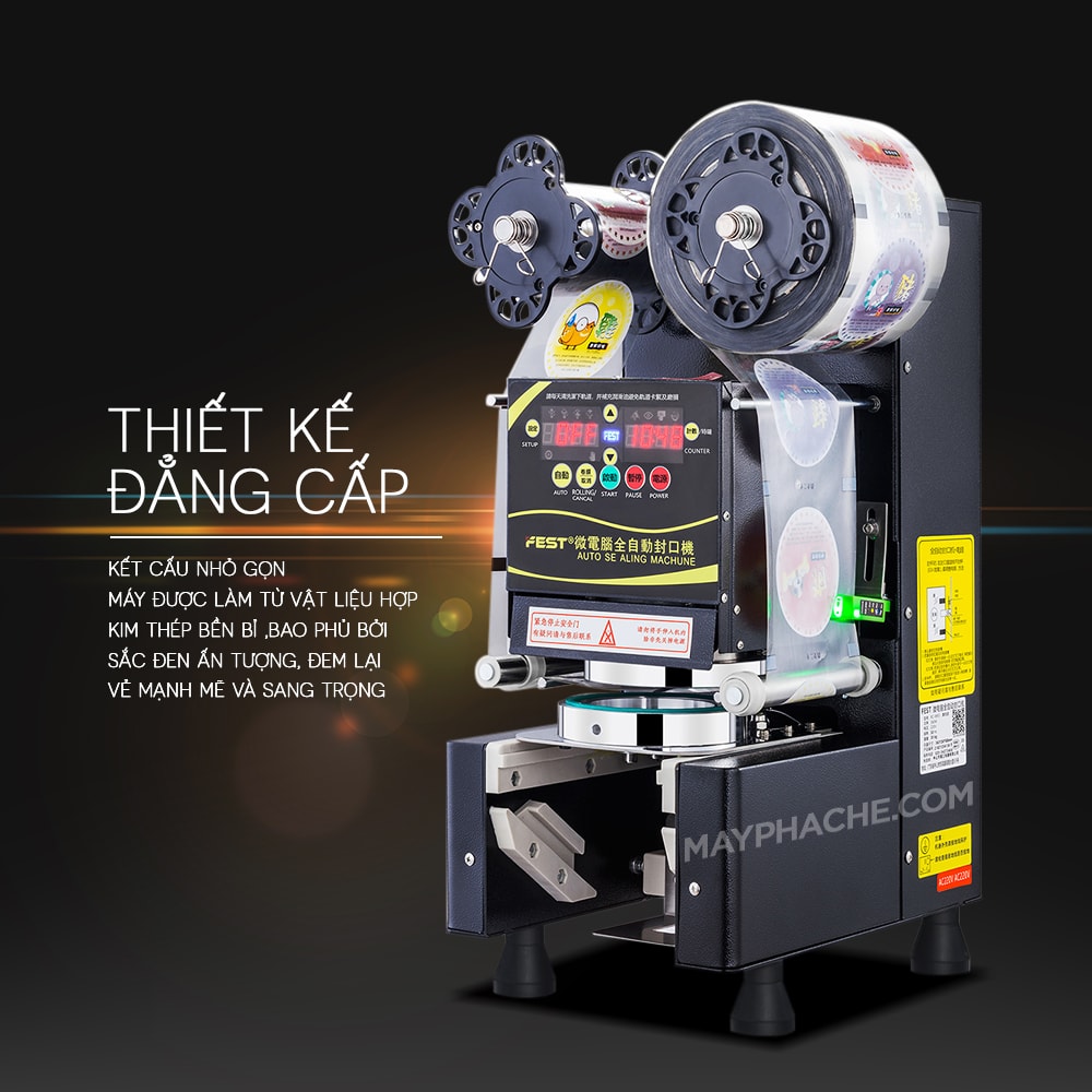Fest là một trong những thương hiệu máy pha chế uy tín thế giới. Máy dập nắp cốc tự động Fest cũng được đánh giá cao về tính chuyên nghiệp; độ bền như nhiều dòng máy khác của thương hiệu Fest. Với công nghệ dập nắp cốc tự động, nhanh và chính xác; máy dập nắp cốc tự động Fest hỗ trợ tuyệt vời cho quán cà phê, trà sữa, đồ uống, nhà hàng…