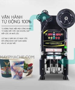 Bước 4: Hoàn thành dập nắp cốc với các mép gọn gàng, kín khít; bạn lấy cốc đã được dập nắp ra khỏi máy Fest.