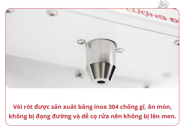 Vòi rót được sản xuất bằng inox 304 chống gỉ, ăn mòn, không bị đọng đường và dễ cọ rửa nên không bị lên men.