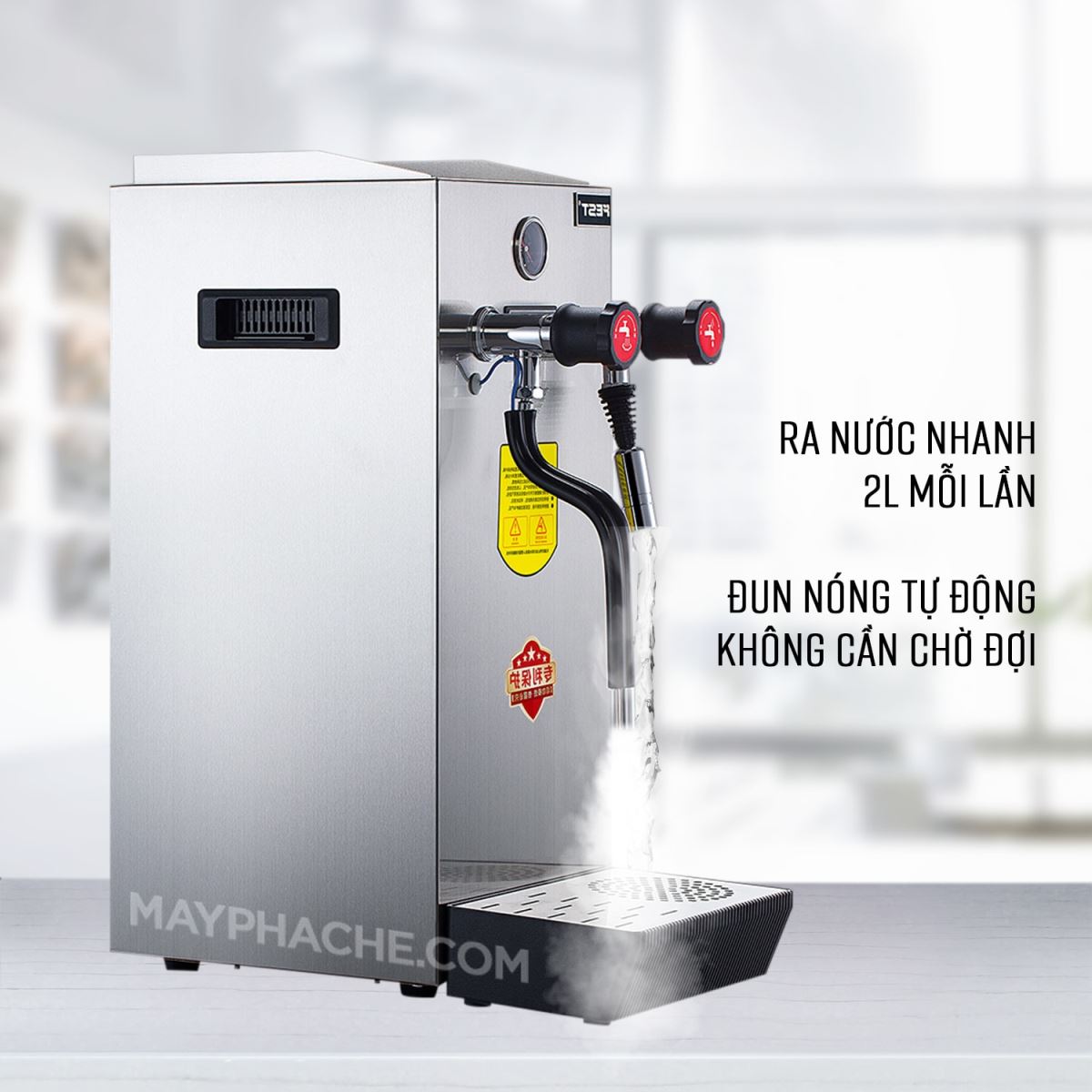 Công suất mạnh mẽ cho phép máy đun nước nóng Fest ra nước nóng nhanh chóng; mỗi lần ra nước nóng đạt dung tích 2 lít. Quy trình đun nước nóng khép kín, tự động hoàn toàn; vòi sục hơi cua máy đun nước áp suất cao Fest có thể sục nóng trong “nháy mắt”. Bất cứ khi nào cần sử dụng nước nóng để pha chế là có ngay mà không cần phải chờ đợi. Cơ chế đun nước nóng theo từng tầng cũng giúp tăng tốc độ đun nước; bảo đảm an toàn, chống khô cháy. Quá trình đun nước nóng ổn định, an toàn, không rò rỉ điện.