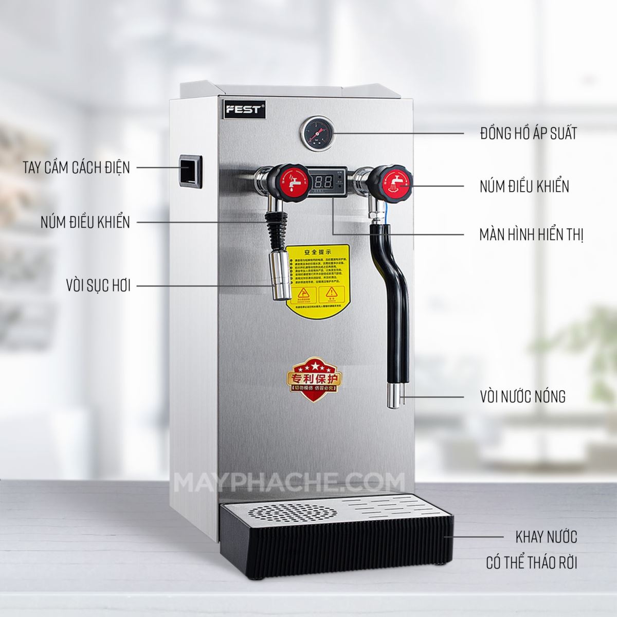 Mua máy đun nước nóng Fest chính hãng ở đâu? Quý vị hãy liên hệ tới mayphache.vn chuyên về máy móc, thiết bị pha chế. Mayphache.vn nhập khẩu trực tiếp từ nhà sản xuất máy đun nước nóng Fest chính hãng. Quý vị đặt mua máy đun nước áp suất cao Fest được giao máy đến tận nơi; giá hợp lý, bảo hành dài hạn và hỗ trợ miễn phí trọn đời.