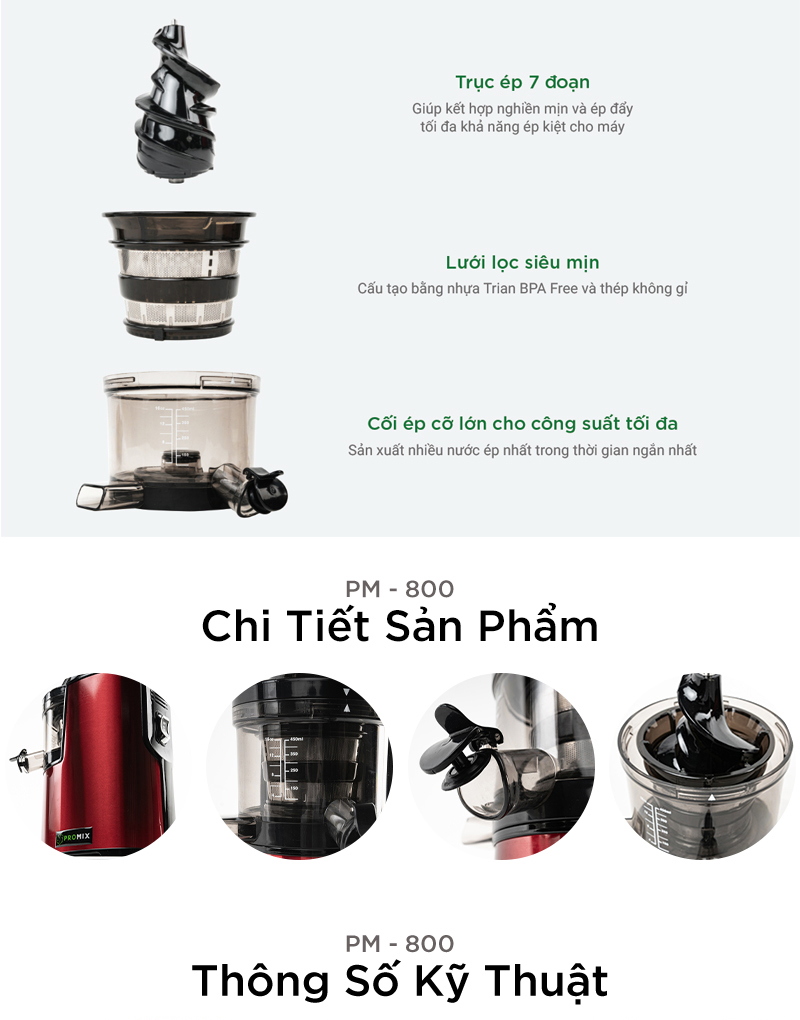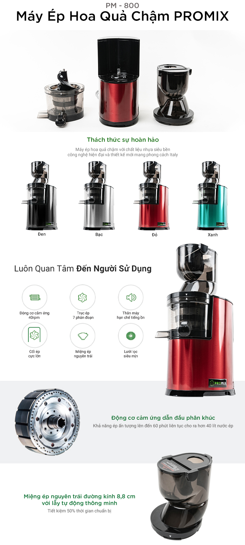 Máy ép chậm Promix PM-800 máy ép hoa quả cao cấp, ép kiệt máy êm