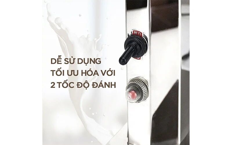 Công tắc điều chỉnh chế độ của máy được thiết kế sử dụng vô cùng đơn giản chỉ với một thao tác gạt, công tắc gạt có hai chức năng đó là gạt lên khi bạn muốn giảm tốc độ đánh sữa và gạt xuống để tăng tốc độ đánh của máy.