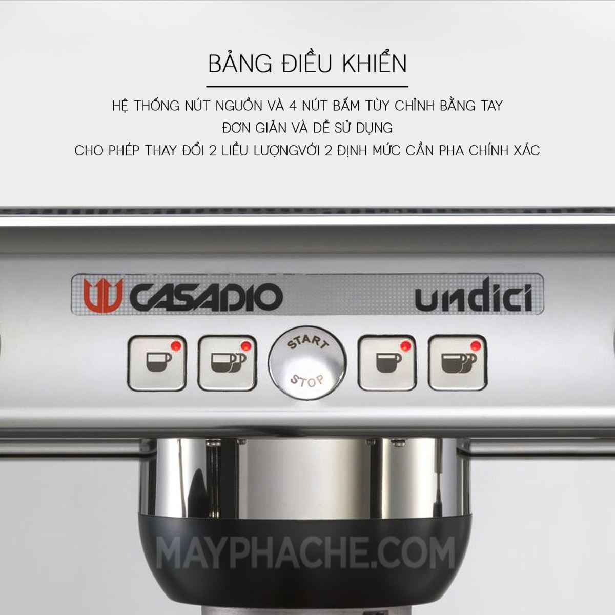 Sử dụng máy Casadio Undici A1 pha cà phê rất đơn giản; với các phím điều khiển được bố trí rõ ràng. Các phím điều chỉnh bằng tay được bọc kim loại, nhấn rất nhạy và nhanh; định lượng nước pha cà phê được cài đặt từ trước. Với đèn LED thông báo ở phía dưới máy; các barista cũng dễ dàng quan sát và theo dõi tiến trình pha cà phê tự động.