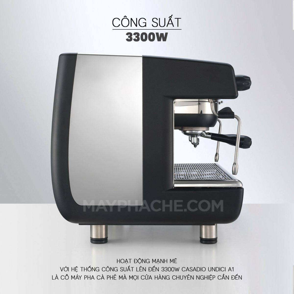 Công suất 2800-3300W của Casadio Undici A1 phù hợp ứng dụng cho những quán cà phê quy mô nhỏ; phục vụ khách hàng mỗi ngày với số lượng trung bình. Ngay cả những giờ cao điểm thì Casadio Undici A1 vẫn đáp ứng kịp thời; phục vụ tốt tại các quán cà phê nhỏ. Thiết bị có công nghệ pha cà phê tự động chuyên nghiệp; với bình đun dung tích 5 lít bằng đồng thau.