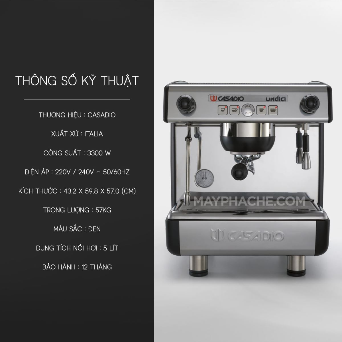 1. Thông số kỹ thuật máy Casadio Undici A1 pha cà phê