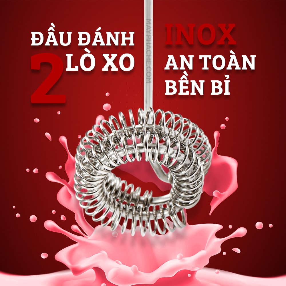 Bước 4: Đặt thanh inox 3 lò xo vào dụng cụ chứa nguyên liệu cần tạo bọt hoặc đánh mịn. Giữ máy để đánh nguyên liệu cho đến khi đạt được kết quả cần sử dụng.