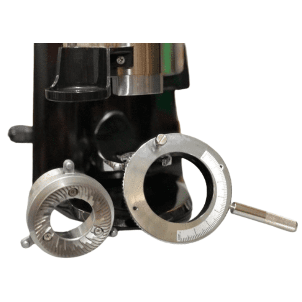Sau khi bật công tắc, chỉnh cỡ xay và mở thanh gạt hạt cafe sẽ rơi xuống. Từ đó, cafe đi qua bộ đĩa xay. Bộ đĩa xay của 900N được đặt theo trục đứng. Cafe xay xong theo dòng thoát xuống khoang đựng bột.