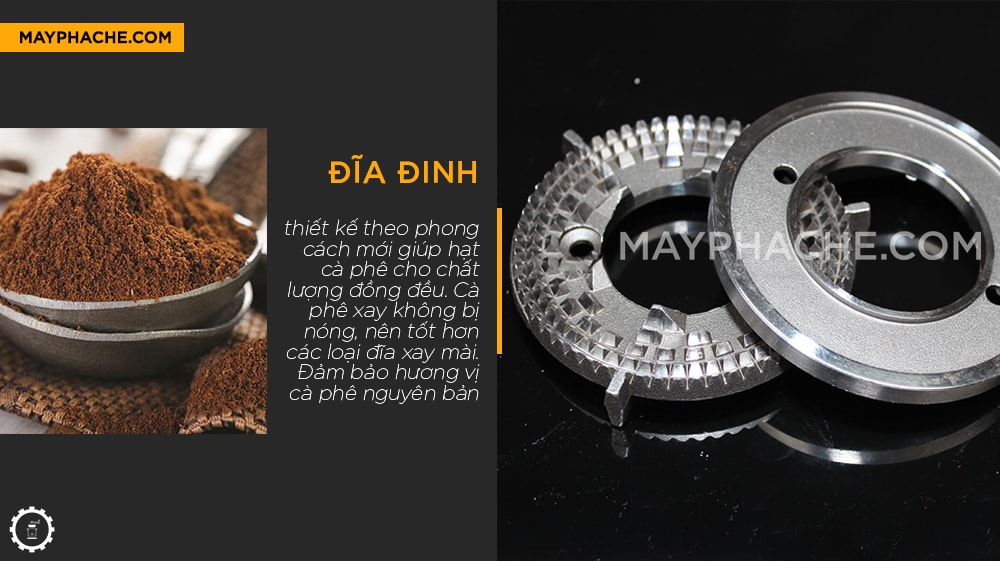 Đĩa xay được làm bằng thép hợp im siêu bền nên bạn không cần lo lắng về tuổi thọ của máy xay cà phê hạt CM520. Máy được trang bị Aptomat tự ngắt tích ứng thay cho tụ thông thường đảm bảo sự an toàn cho máy trước mọi sự cố về điện. Ngoài màu sắc bắt mắt, mọi chi tiết trên máy đều được thiết kế tối ưu sự thuận tiện khi sử dụng cho người dùng.