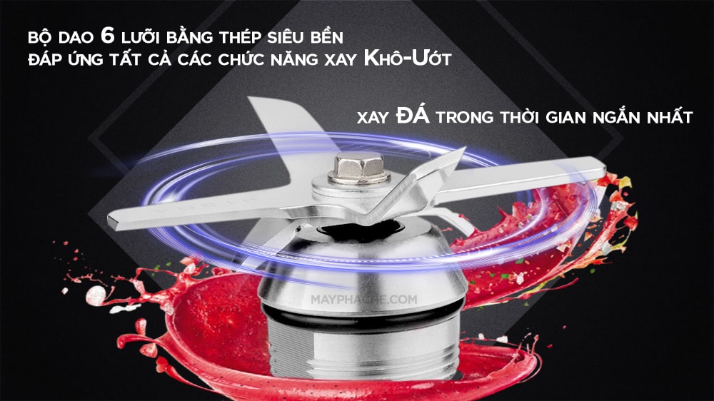 Về tính ứng dụng, lưỡi dao thép 5 cánh siêu khỏe có thể xay mịn cả đá, smoothies. Máy sinh tố Omniblend còn là công cụ nhà bếp tuyệt vời, giúp bạn chế biến sinh tố rau, củ, quả nhanh chóng và tiện lợi.