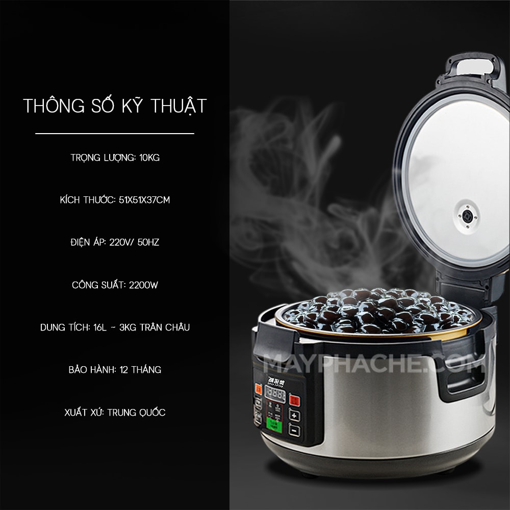 Mayphache.vn phân phối nồi ủ trân châu các loại, trong đó có nồi ủ dung tích 16 lít. Xuất xứ nồi ủ được nhập khẩu chính hãng; có chính sách bảo hành dài hạn, đổi mới 100% trong trường hợp nồi ủ bị lỗi kỹ thuật. Giá bán nồi ủ trân châu 16 lít siêu hấp dẫn; chỉ khoảng 7 triệu đồng và có chính sách vận chuyển giao hàng toàn quốc. Bạn hãy đến mayphache.vn để sở hữu giải pháp nấu trân châu ngon tròn vị, chuyên nghiệp; nhanh-gọn-nhẹ với nồi ủ trân châu hiện đại.