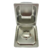 Diện tích bồn rửa tay được thiết kế rộng rãi giúp việc rửa tay và vệ sinh các loại dụng cụ pha chế tiện dụng hơn. Ngoài ra, các nhà thiết kế còn trang bị cho bồn rửa tay một tấm inox có lỗ nhỏ đặt trên bề mặt có diện tích khoảng 2/3 mặt bồn. Tấm inox này được sử dụng để đặt dụng cụ pha chế lên trên bề mặt cho ráo nước, giúp dụng cụ nhanh khô hơn sau khi rửa.