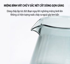 - Miệng bình đựng vát chữ V sắc nét: Điều chỉnh lưu lượng nước mỗi làn rót ra ly tương đối dễ và tuyệt đối không bị lem, chảy rọt cà phê sau mỗi lần rót