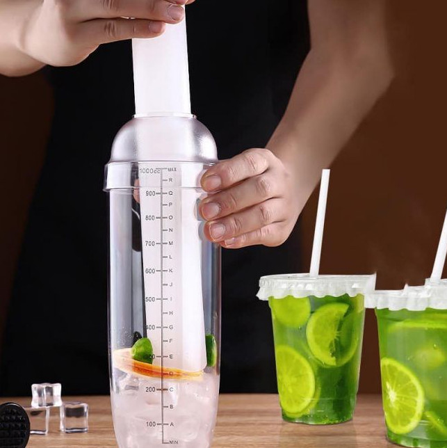 Vạch chia có số đo định lượng rất tiện dụng khi căn chia nguyên liệu Ngoài bình lắc nhựa có vạch chia định lượng , bạn còn có thể lựa chọn một số thiết bị khác cho quây bar chuyên nghiệp trong gian hàng của chúng tôi