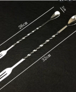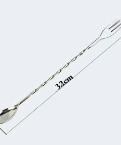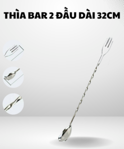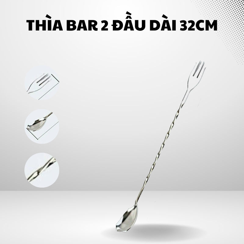 Khác với các loại thìa pha khuấy đơn thuần; thìa bar 32cm được thiết kế theo tiêu chuẩn riêng của ngành pha chế. Một đầu thiết kế dạng thìa nhỏ nhắn, giúp bartender dễ dàng khuấy đều cocktail. Đầu kia thiết kế thành 3 thanh nhọn như chiếc rĩa, dùng để ghim trái cây. Phần tay cầm của thìa được uốn xoắn, vừa tạo nét thẩm mỹ tinh tế và độc đáo; vừa tăng khả năng chịu lực khi khuấy đồ và giúp bartender cầm thìa thêm chắc tay.