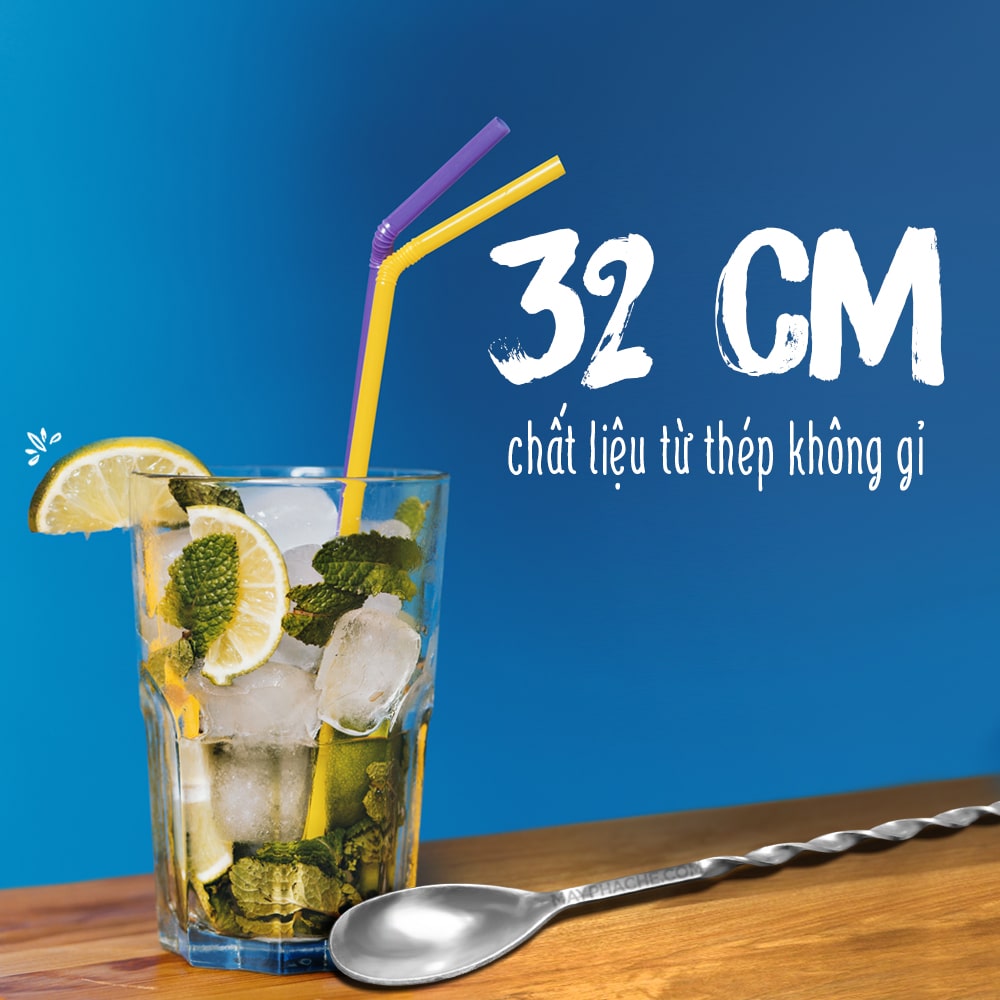 Với chiều dài 32cm, thìa bar 32cm đủ dài để có thể chạm đến đáy bình shake hoặc cốc lớn. Ngoài việc hỗ trợ khuấy đều cocktail khi không dùng đến bình lắc bartender; thìa bar này còn được ứng dụng để đong các hương vị, vật liệu cần dùng với số lượng ít trong pha chế.