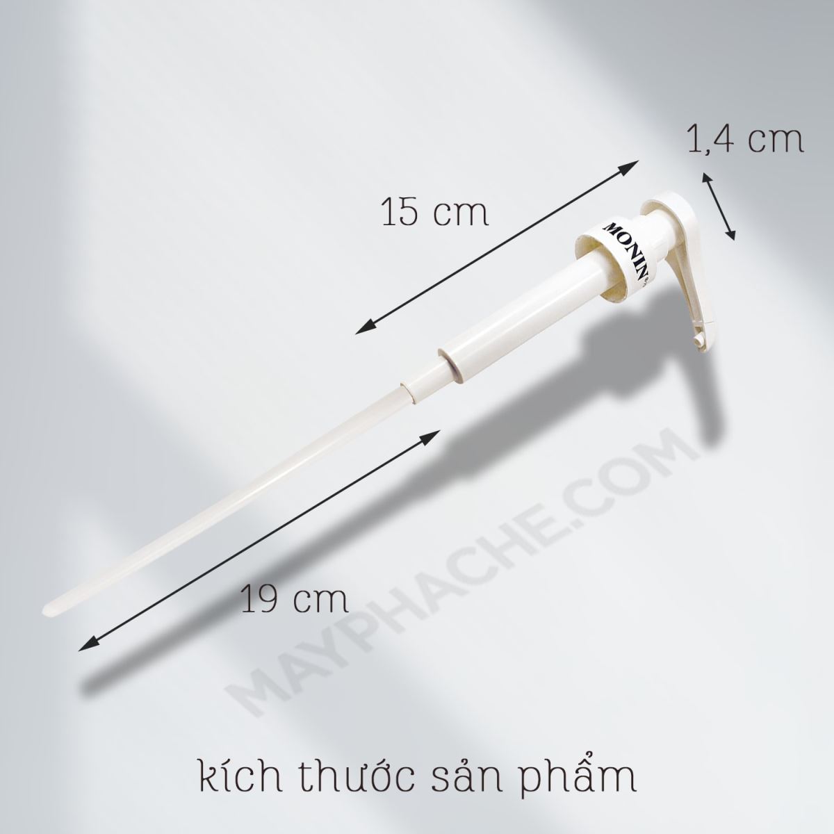 Hiện nay, loại vòi bơm siro chuẩn nhất trên thị trường có kích thước: 19 x 15 x 1.4cm. Chúng phù hợp với chai Siro Monin dung tích 700ml. Một lần nhấn, bạn sẽ lấy được 10ml siro phục vụ pha chế. Loại vòi bơm cao cấp được thiết kế bằng nhựa cao cấp màu trắng, phù hợp dùng trong thực phẩm. Quan trọng nhất là chúng an toàn tuyệt đối; không ảnh hưởng đến chất lượng đồ uống.